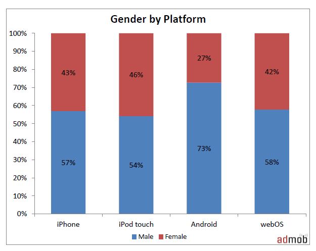 ในส่วนของเพศ การใช้งานผ่านมือถือของ OS ต่างๆ เปอร์เซ็นของผู้ชายมากกว่าผู้หญิง โดยเฉพาะ Android