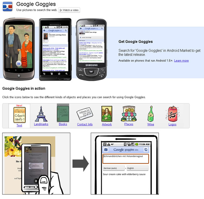 มาดูวิดีโอแนะนำกันครับ เข้าไปดูข้อมูลเพิ่มเติม ได้ที่ http://www.google.com/mobile/goggles/