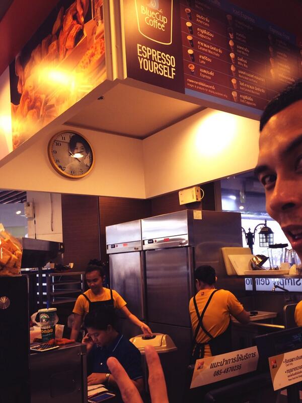 เป็นเหตุบังเอิญสองครั้งครับ ที่ผมเจอการกระทำที่ไม่เหมาะสมของพนักงานร้านค้า ที่ผมไปเป็นลูกค้า ครั้งแรกผมไปซื้อกาแฟที่ร้าน Blue Cup Coffee สาขาฟอร์จูน ทาวน์ ปรากฏว่าสิ่งที่ผมเจอภายในร้าน ขณะที่พนักงานกำลังง่วนกับการทำกาแฟที่ผมสั่ง ผมสังเกตุเห็นพนักงานหลังร้านคนนึงถือกาแฟแก้วนึงมา หยิบมาทานเสร็จสัพแล้วก็วางไว้ในร้านซึ่งเป็นจุดที่เห็นได้ชัดจุดหนึ่ง ถ้าเป็นกาแฟของร้านคงไม่เป็นไร แต่เป็นแก้วกาแฟของร้านกาแฟชาวดอย ตั้งวางไว้อย่างเปิดเผย ผมถ่ายรูปแชะไว้เป็นหลักฐานหนึ่งรูป