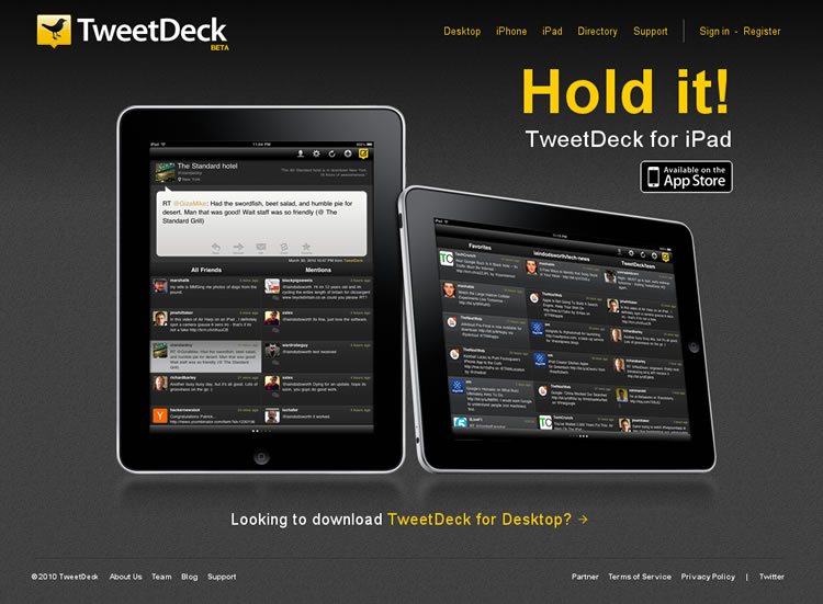 You can now have the power and flexibility of TweetDeck on the exciting new Apple iPad. Download the app for free from the AppStore now.